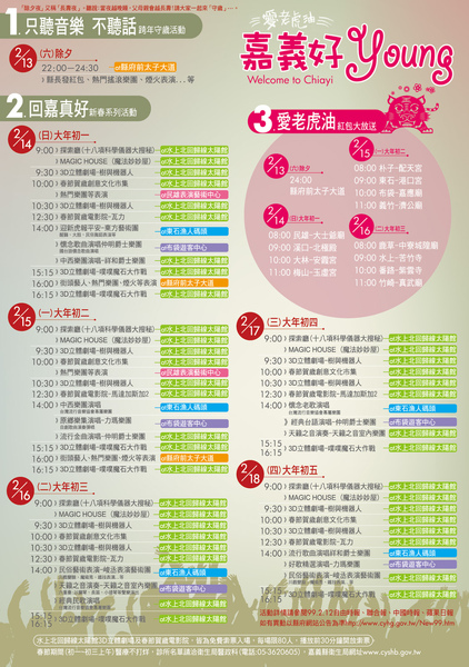 活動時間:99年2月14日至2月18日(年初一至初五)