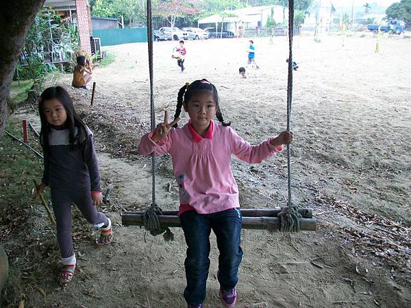 坐不住的小朋友們在庭院裡到處玩耍,連一旁的空地也變成玩樂的"沙坑",挖洞、蓋房子、埋寶藏...玩得滿身大汗!