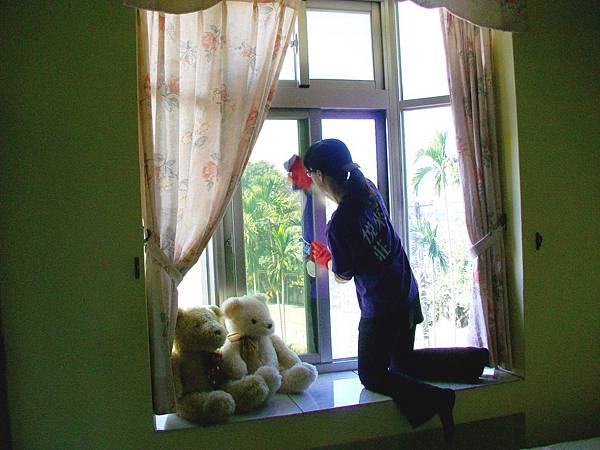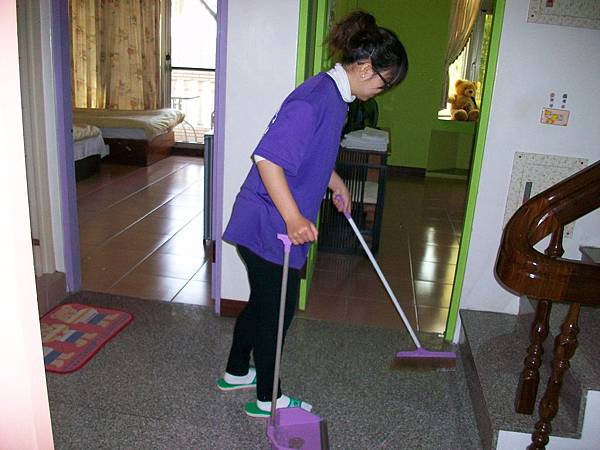 不論舖床、洗晾被單、打掃清潔、洗刷室內拖鞋...,每一項都一絲不苟;