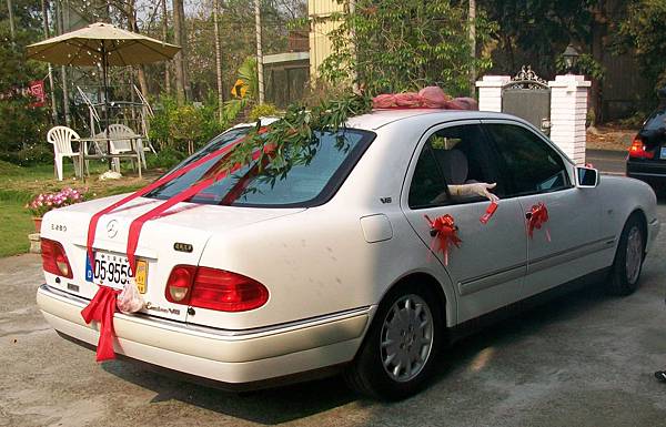 新娘子依習俗丟扇子,坐上禮車朝向幸福美滿的道路前進~