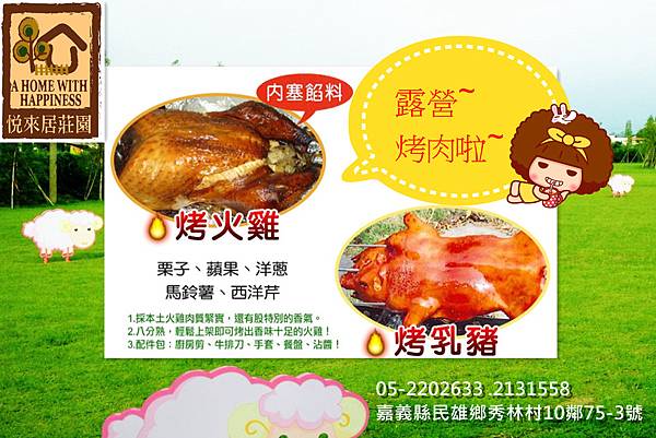 歡迎三五好友,全家大小相揪一起烤肉趣 !! (o^^o)洽詢電話:05-2202633. 2131558
