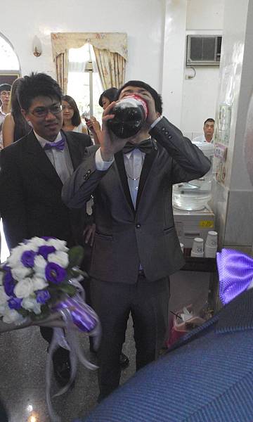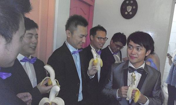 今天民宿包棟迎娶,帥氣的新郎闖過層層關卡,吃芥末香蕉、超大杯可樂⋯等各式難題,終於成功娶得美麗新娘,感恩的告別父母時,深深感動現場所有人~( T_T)\(^-^ )